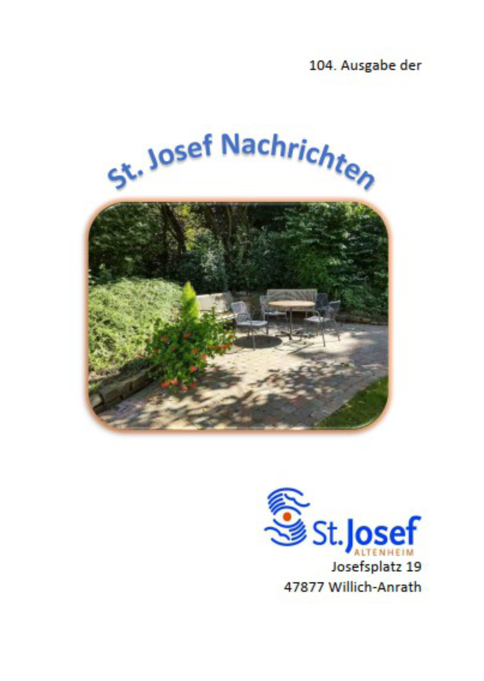 Wir halten Sie auf dem Laufenden. In unserer regelmäßig erscheinenden Hauszeitung finden Sie kleine Nachrichten und Bilder rund um das St. Josef. So sind Sie und Ihre Angehörigen immer im Bilde und gut informiert.